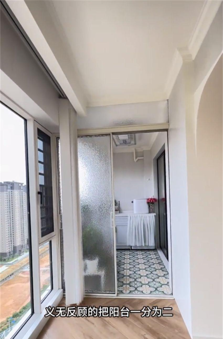 靠里侧隔出半平米装个洗衣池,洗衣机嵌在柜里,洗完衣服直接在旁边晾,不用穿过客厅来回跑。